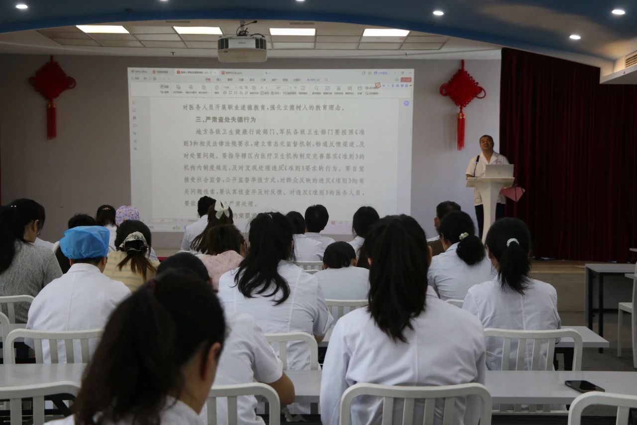 来自中医科、妇产科、孕保科三位医师代表先后发言,结合自身从医经历,分享了对医者使命的理解与感悟,字里行间满是对医学事业的热爱与担当。紧接着,围绕着医德医风、医疗安全质量核心制度、医疗纠纷预防和处置等方面,进行了“问答赢奖品”环节,大家踊跃参与,现场气氛热烈,在欢声笑语中释放了压力,在轻松互动中巩固了医学知识。